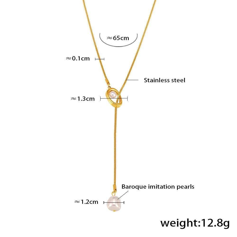 Best Selling Women 18k Gold Plated Stainless Steel Long Pearl Tassel Necklace Adjustable Y Shaped Pearl Sweater Chain Necklace